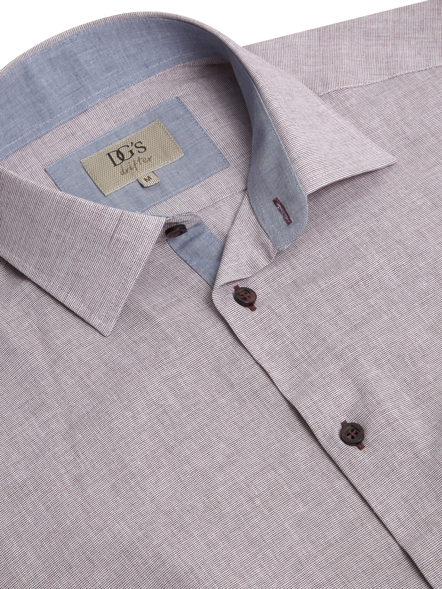 Plain contrast trim on front placket and collar lining