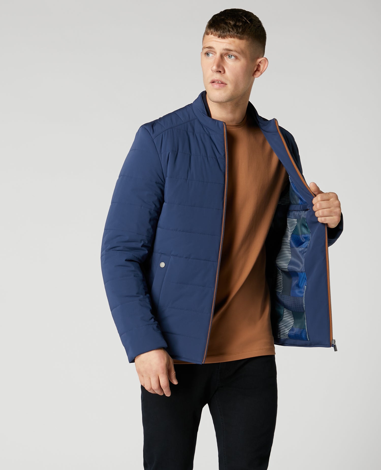 Contrast trim on collar and zip