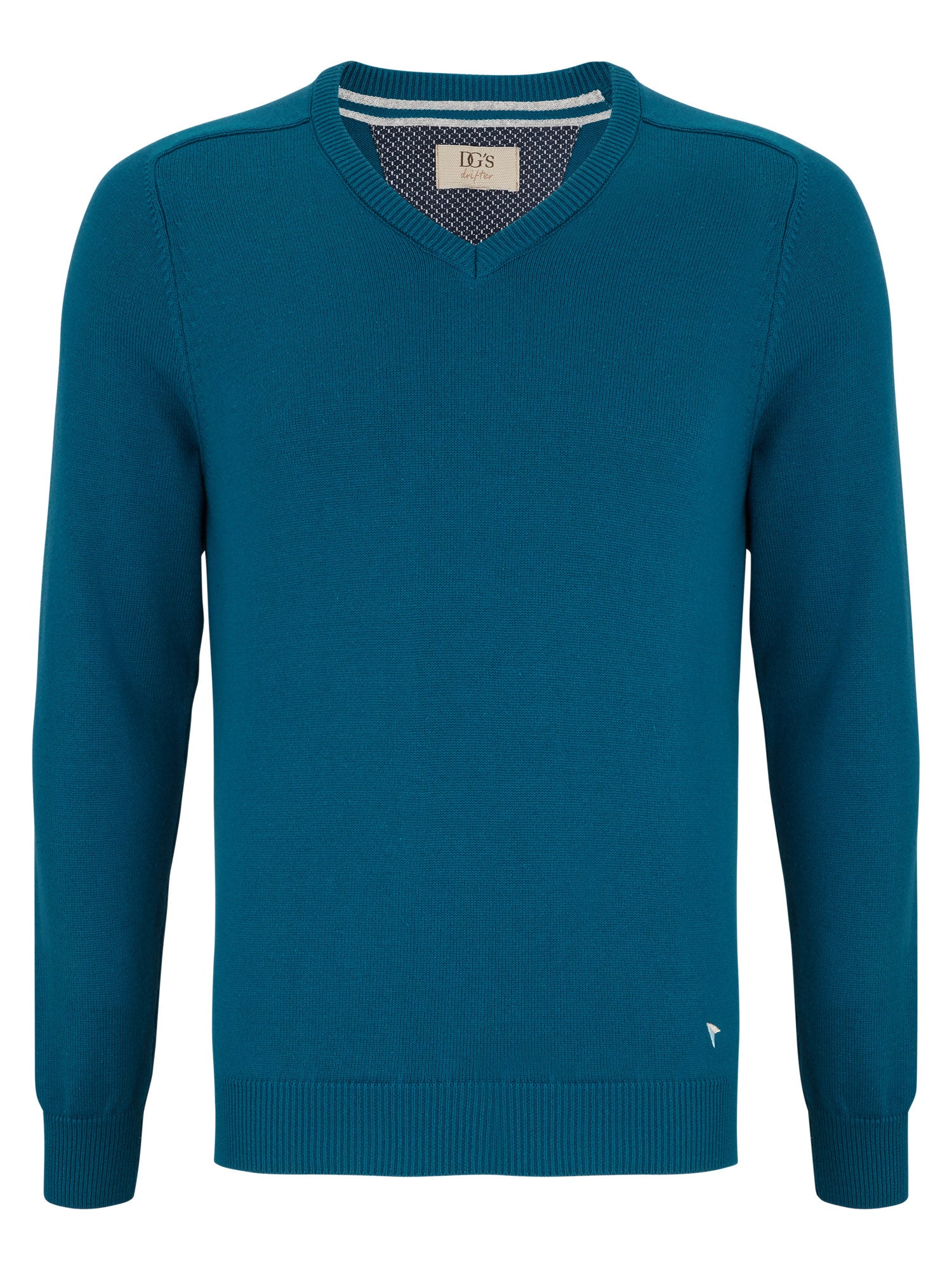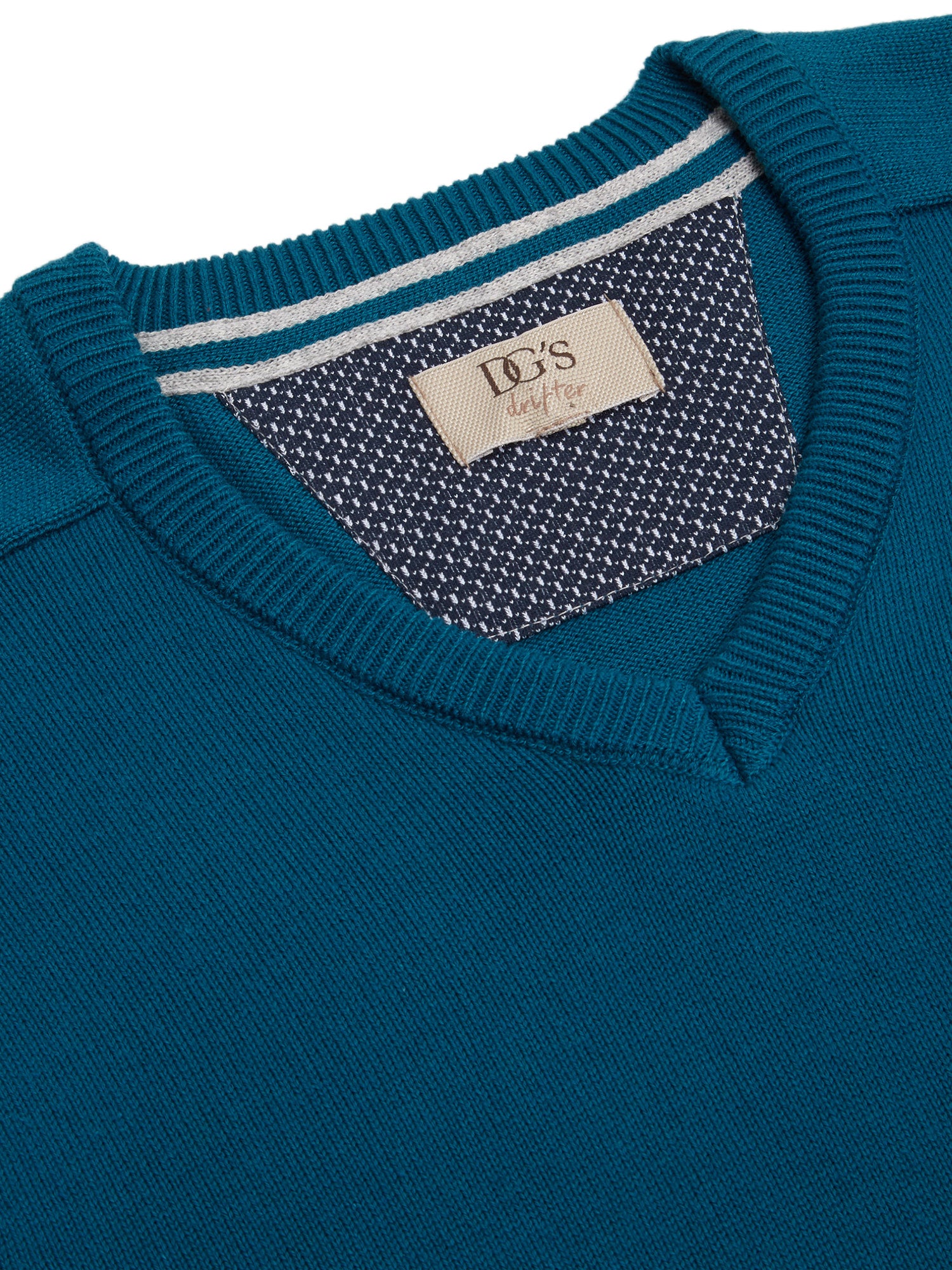 DG's Drifter V-Neck Cotton Blend Jumper - Teal Blue