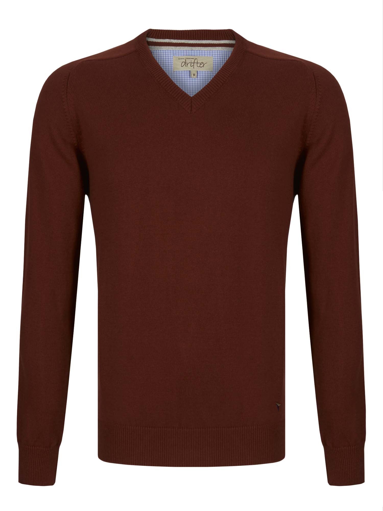 DG's Drifter V-Neck Cotton Blend Jumper - Rust