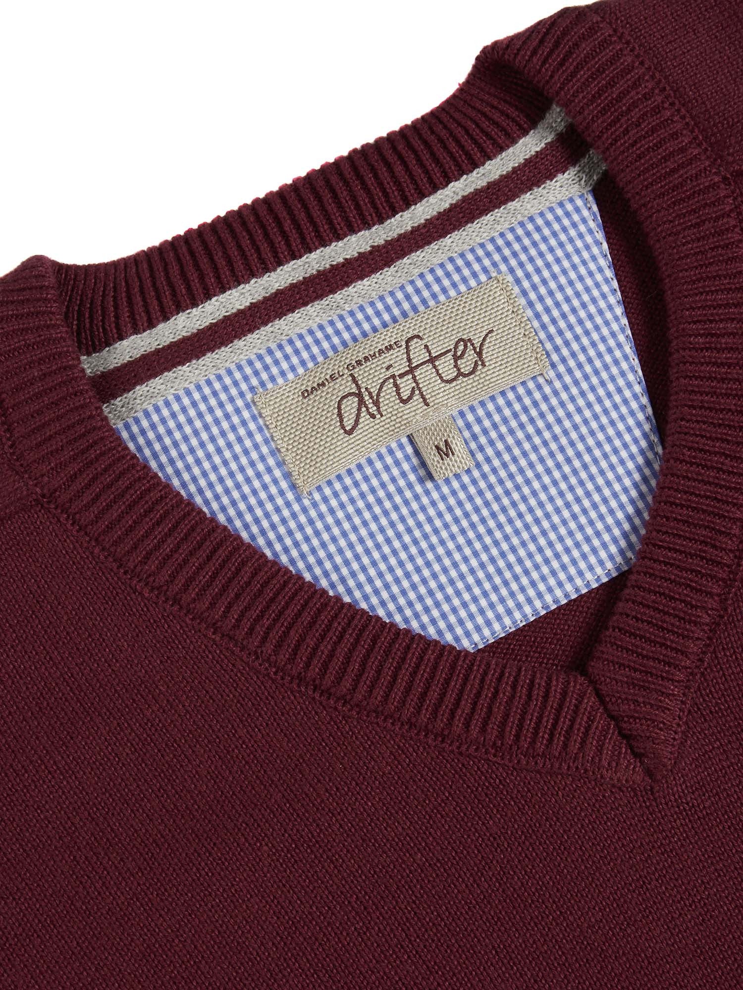 DG's Drifter V-Neck Cotton Blend Jumper - Wine