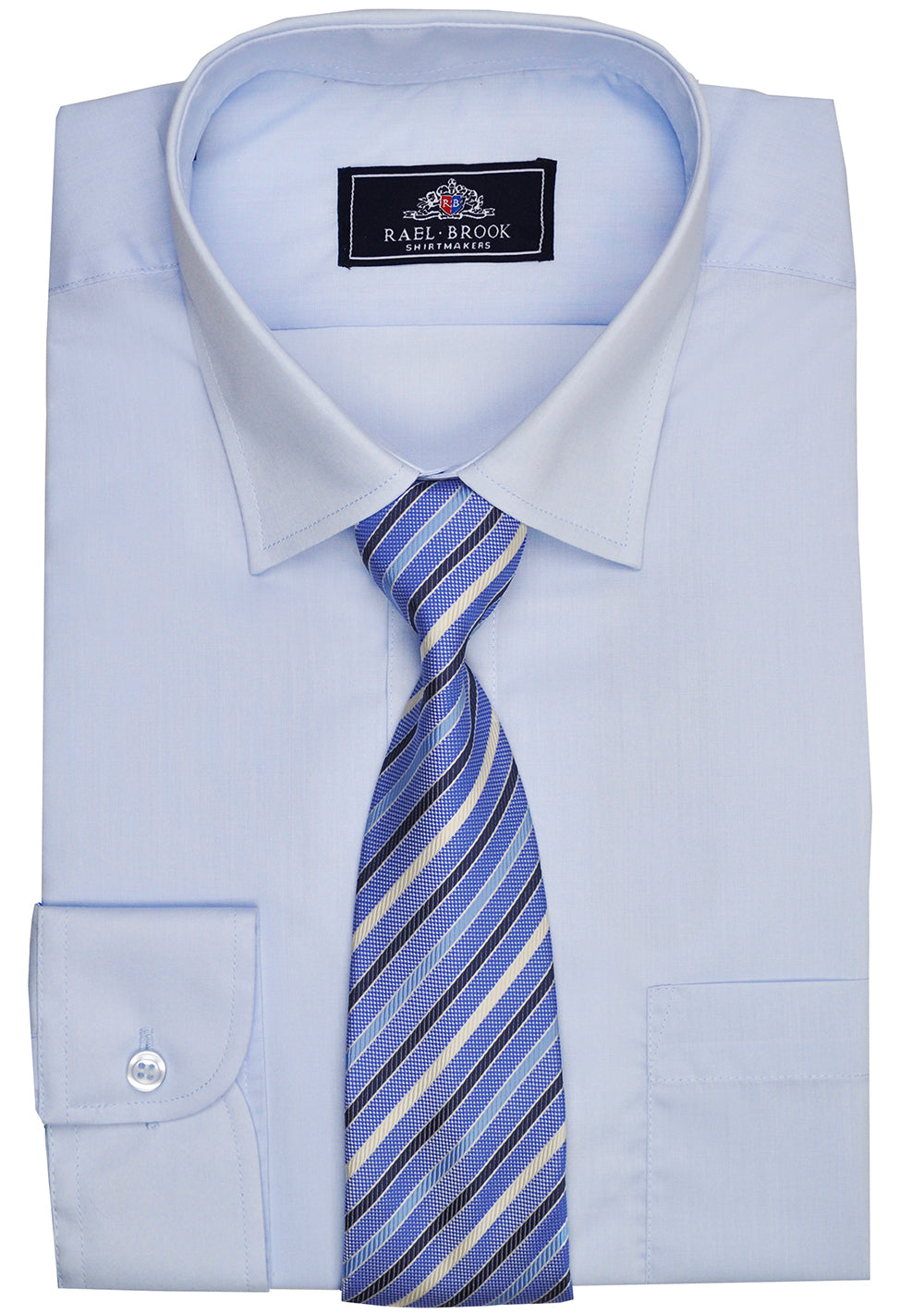 Rael Brook Plain Shirt & Tie Set - Light Blue
