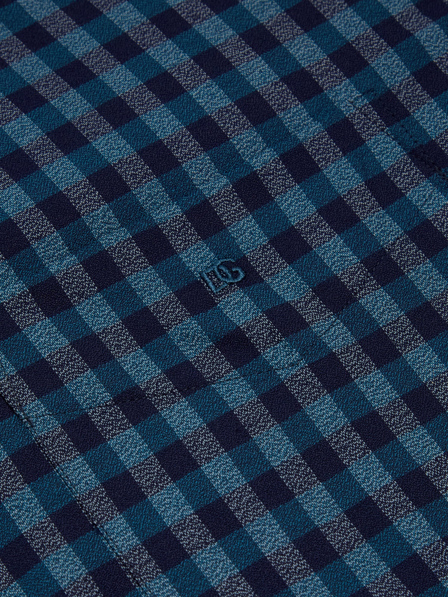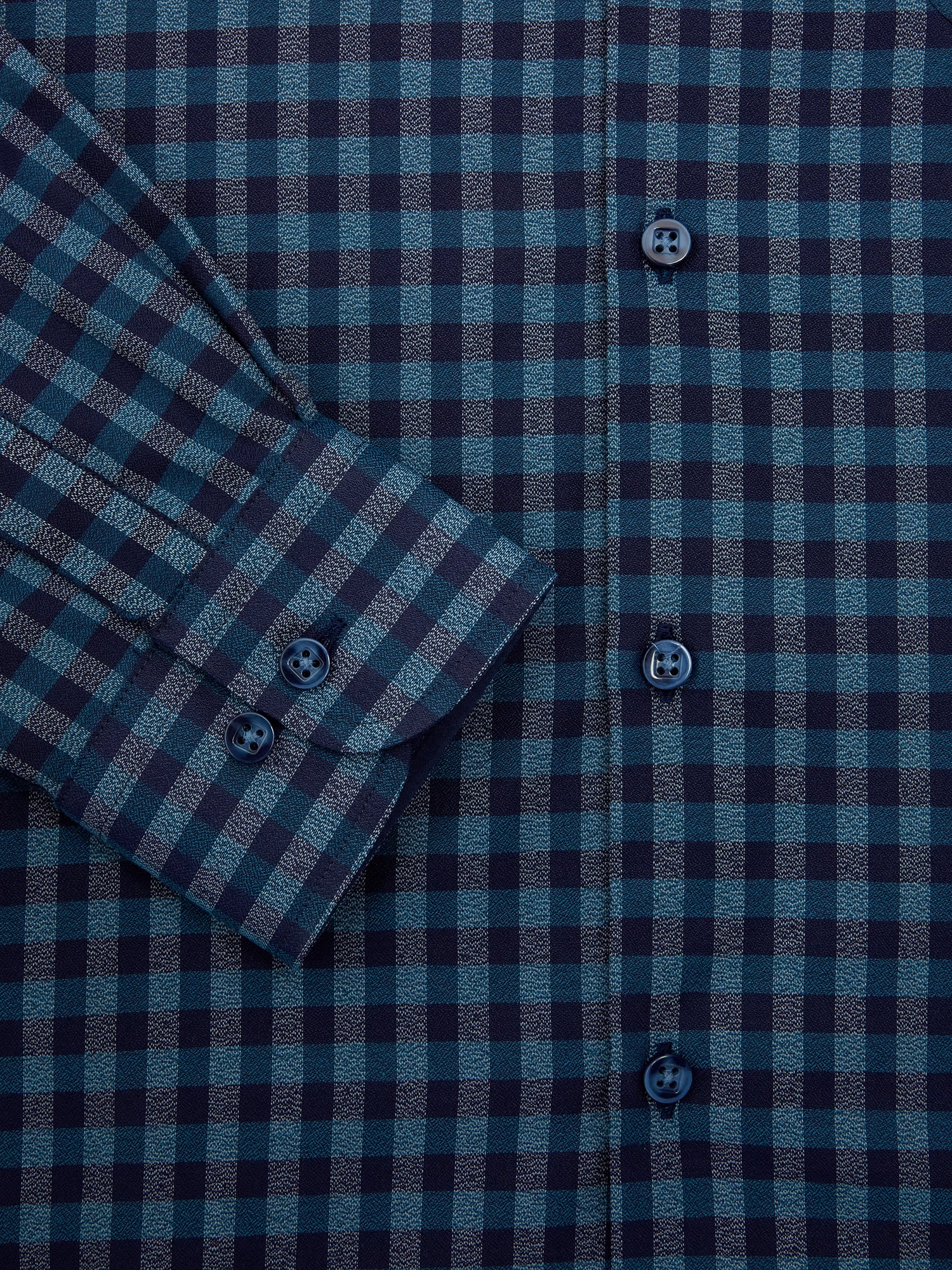 - Plain contrast trim on front placket and collar lining