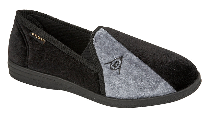 Black/Grey Velour Twin Gusset SlipperTR Sole